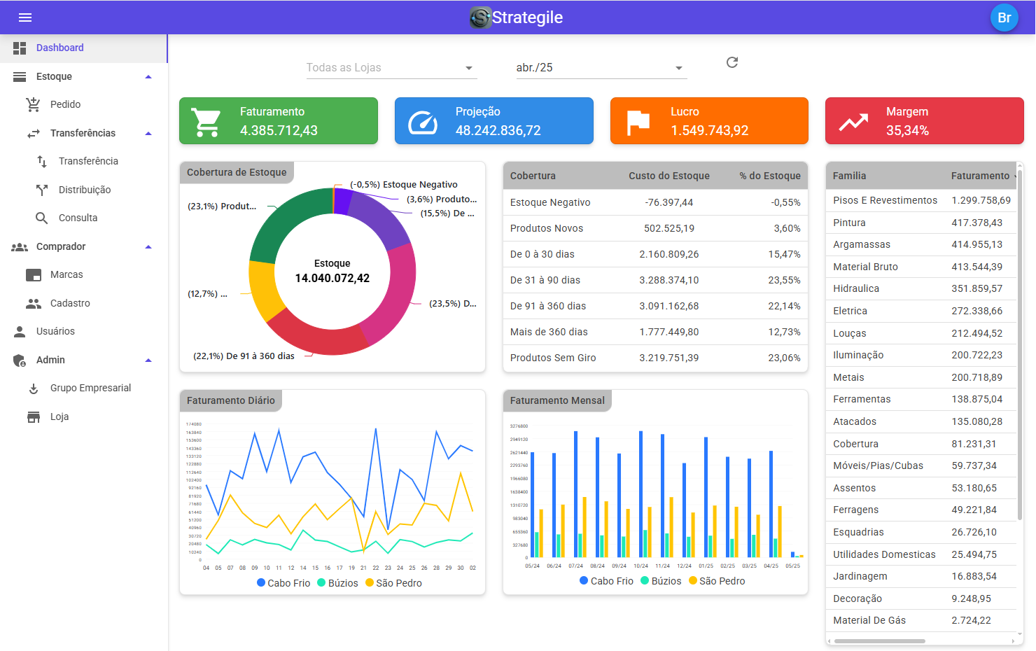 O Strategile é o Sistema Inteligente de Gestão Estratégica de Estoques das Lojas do seu Grupo Empresarial.